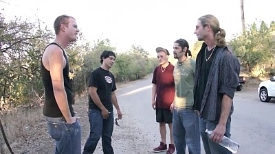 Cody and Johnny are cruising the back roads and come across three other guys looking for the same thing. the group heads through some trees and bushes and down a hill. the group sucks and eats come until the sun goes down.