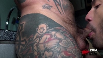 Something's cooking in the kitchen and it's spicy, hot and Latin-Asian fusion. Tatted Latin horndog Matthew Grande is getting his throat rammed full of edgy Asian kink stud Damian X. Dragon. Matthew gets down on his knees like any good little cocksucker begging for a hot spurting dick. Damian's tool is bronze and uncut, just the way our horny sucker likes it. He gobbles and gulps his buddy's cock, and soon Damian is ready to blast. When it's time to let that sperm splatter, he aims his meat weapon straight for Matthew's handsome face. No matter, Matthew lives for a hot cum facial fresh from the spout. And there's plenty there for him to lick up from the drippings.
